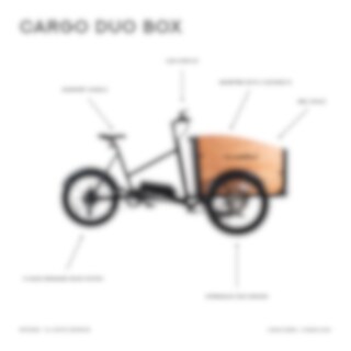 Evobike Duo Cargo Box on slimmattu sähköinen boksipyörä ja erinomainen sinulle, joka havaitsee sähköpyörän mihin paljon pakkausta mahtuu. Saat helposti tilaa monille lapsille, lemmikeille ja pakkauksille sähköpyöränlaatikoille, joka sisältääistu penkkiä (tilaa kahdelle lapsille) ja turvavyötä. DuoCargo Boxilla on musta runko sekä komponentit harjatuissa alumiinissa ja nahkasta, joka antaa pyörän tyylikkään ulkonäön.
