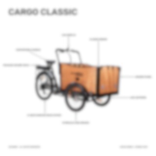 Evobike Cargo Classic on, kuten nimestä voi päätellä, klassisesti muotoiltu tavarapyörä. Musta lakattu runko, harjattu alumiini ja nahkaiset yksityiskohdat antavat laatikkopyörälle todella kauniin ilmeen. Lisäksi Cargo Classicissa on alumiinivanteet, jotka on erityisesti vahvistettu kaksoispohjilla ja pinnat ruostumattomasta teräksestä.