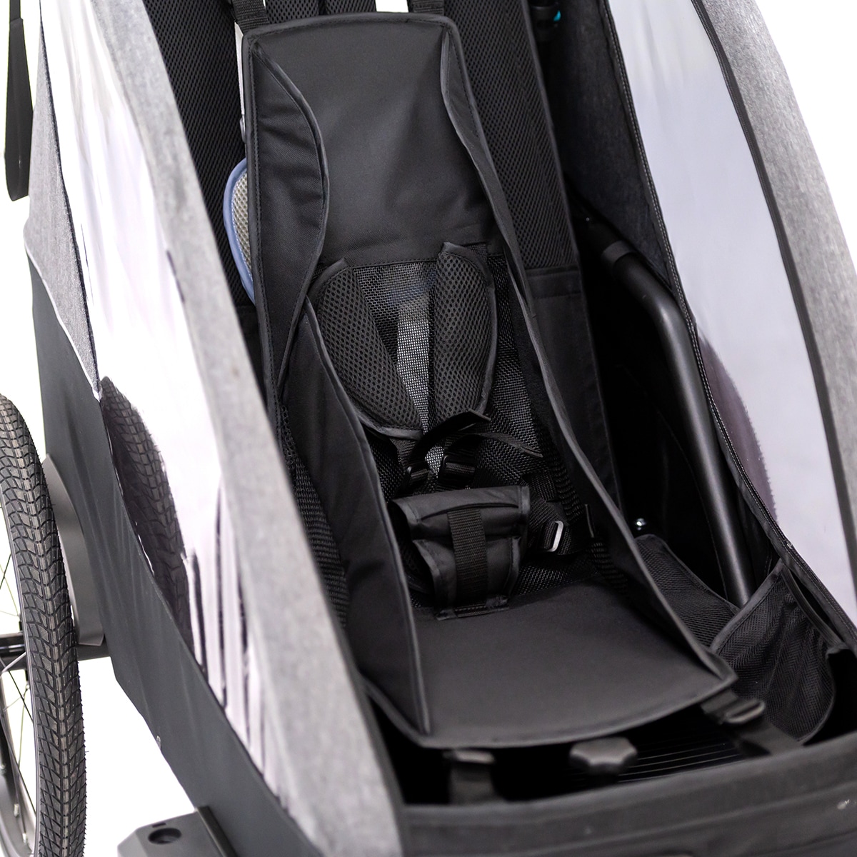 Pidennä pyörävaunusi käyttöaikaa. Evobike Sandhamn- ja Tjörn-vaunuihin sopivan vauvan valjaiden avulla myös kaikkein pienimmät lapset voivat matkustaa turvallisesti heti alusta alkaen.