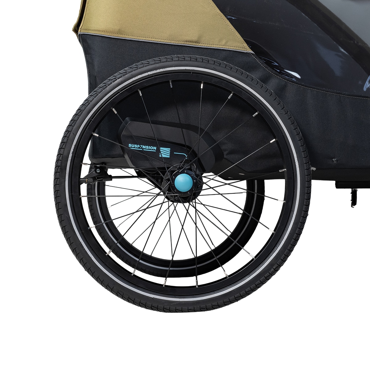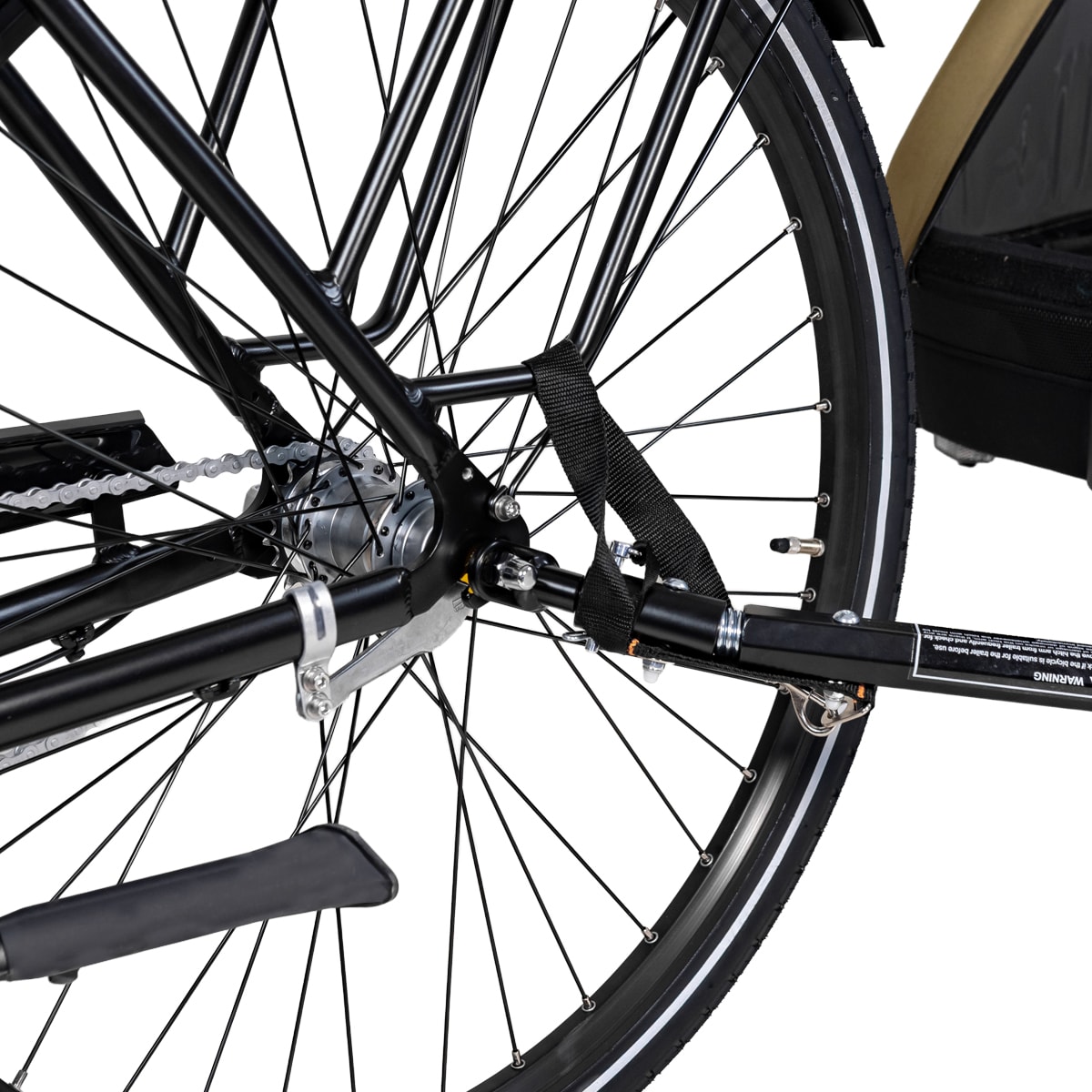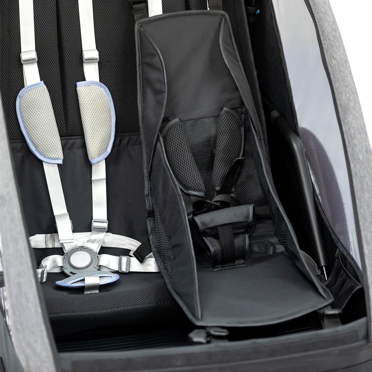 Lisäkäytännöllisyyttä tuo pyöräkärryn takaosan säilytystila, joka sopii esimerkiksi laukulle tai muille tarvikkeille.