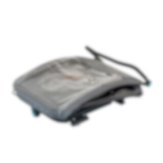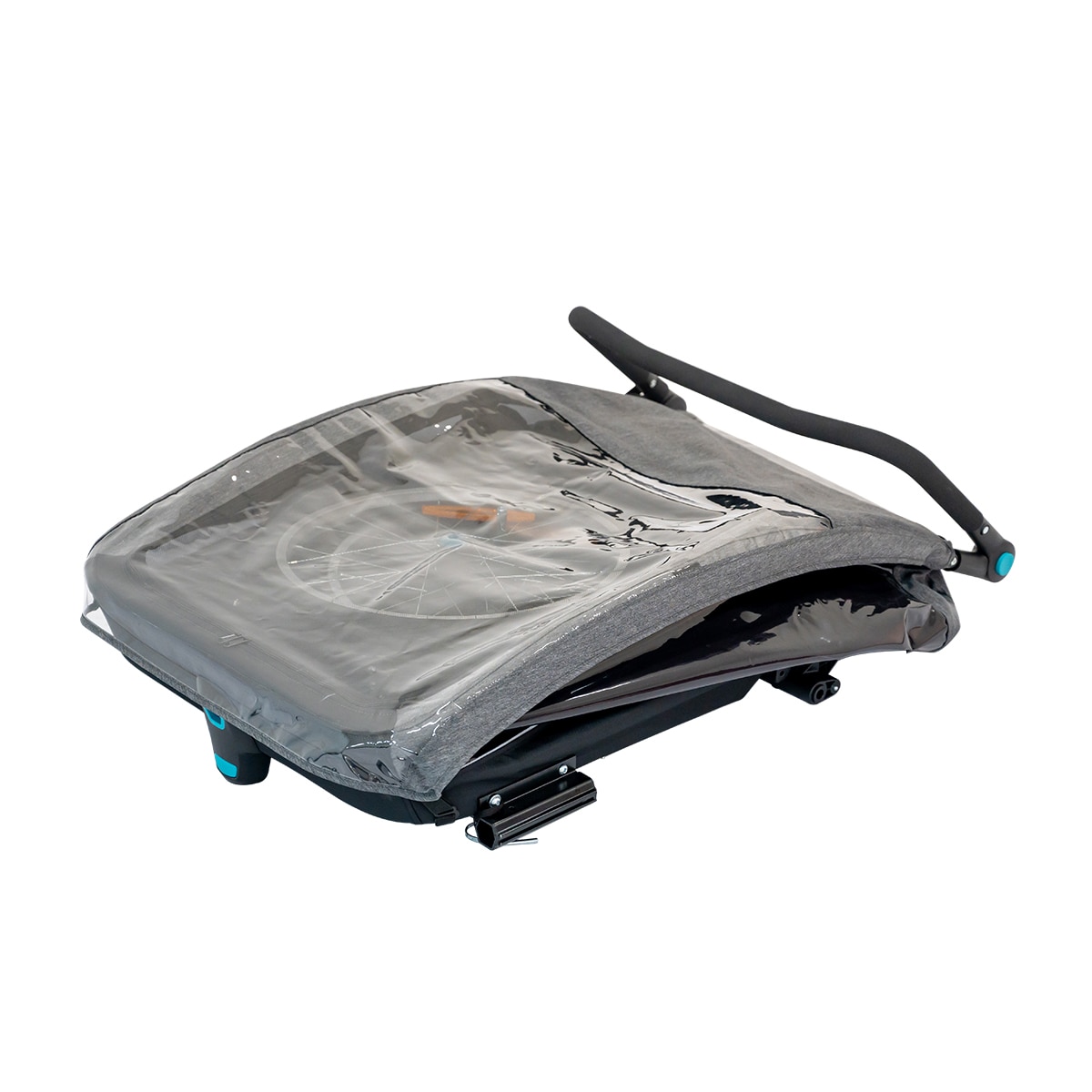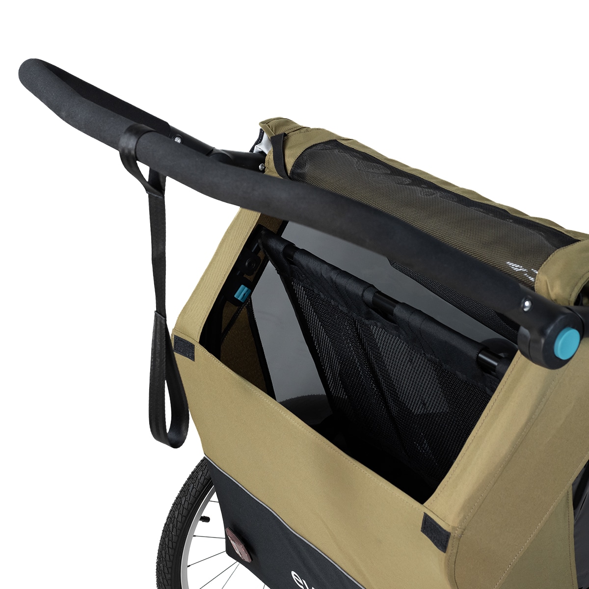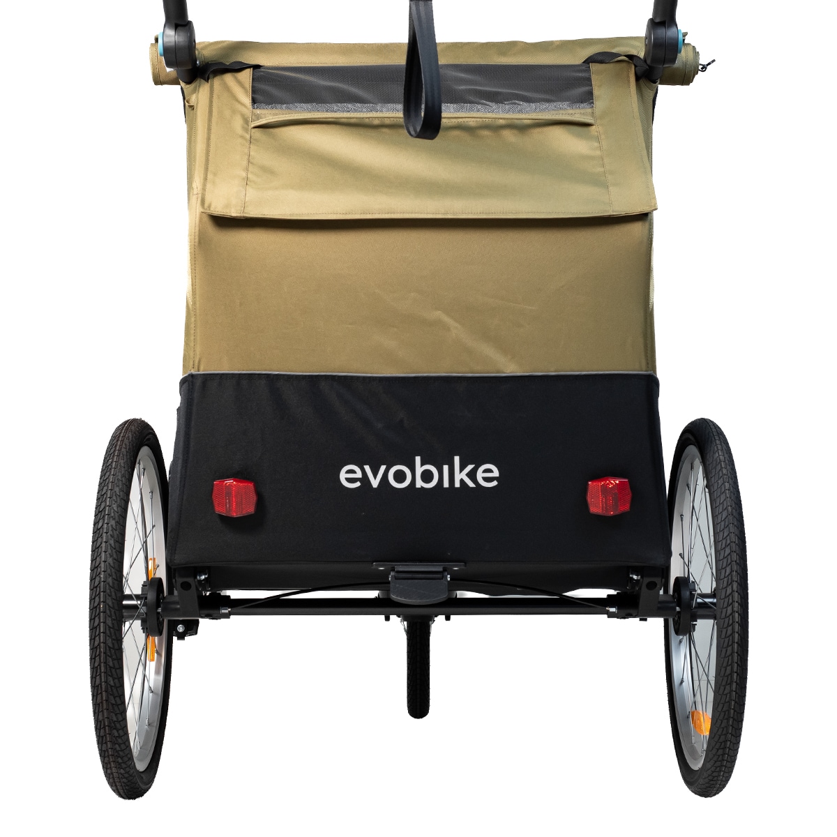 Lisäkäytännöllisyyttä tuo pyöräkärryn takaosan säilytystila, joka sopii esimerkiksi hoitolaukulle tai muille tarvikkeille.