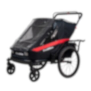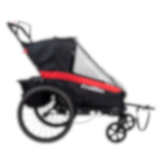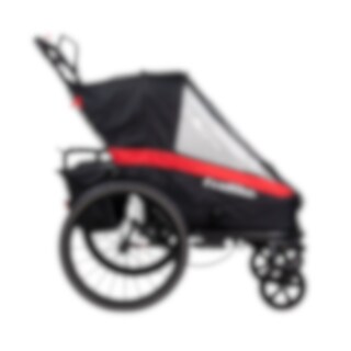 Pyörän peräkärry voidaan tarvittaessa muuttaa nopeasti rattaiksi, ja rattaat voidaan myös taittaa sekunneissa helpottamaan säilytystä. Vaunujen kyljessä on näppärä säilytystila vaunujen pyörille/kiinnitysvarsille, jotta takatavaratilaa voidaan käyttää pakkaamiseen. Vaunun takana on iso tavaratila ja taskut mm. matkapuhelin ja vesipullo. Vaunussa on kolmessa portaassa säädettävä vaimennus takaosassa, joita voit mukauttaa kuorman painon mukaan.