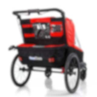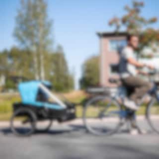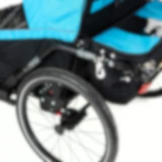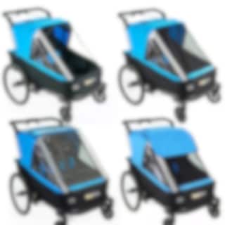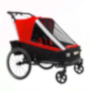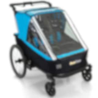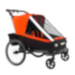 Iso ja sporttinen pyörävaunu kahdelle lapselle. Lastenvaunupaketti sisältää kaksi pyörivää etupyörää sekä säädettävän vaunun työntötangon. Täydellinen sinulle, joka haluat pyöräillä lastesi kanssa kaupoille ja jalkautua shoppailemaan. Mukavaan vaunuun pääsee paljon valoa ja vaikka alumiinirunko on kevyt, se on suojaava ja hyvin ruostesuojattu. Kokoontaitto käy sekunneissa jolloin varastointi on helpompaa.