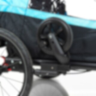 Vaunun muuntaminen pyörävaunusta rattaiksi käy käden käänteessä. Vaunun sivuilla on telineet vaunupyörille / kiinnitysvarrelle, jolloin vaunun takaosan tavaratilan saa käytettyä ostoksille.