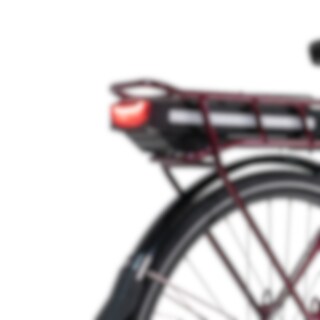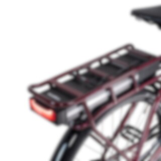 Litiumakku on sijoitettu takatavaratelineelle. On mahdollista ladata akku sen ollessa paikallaan tai poistaa akku ja ladata muualla.